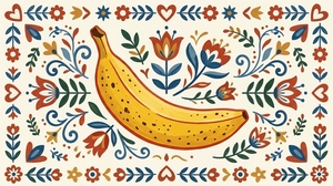 Scandinavian folk art with symmetrical floral motifs, warm red and blue palette on a cream background, flat decorative shapes, and hand-painted charm