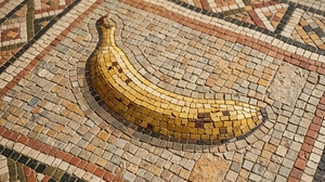Ancient Roman mosaic with small tessera tiles, earthy terracotta and ochre palette, slightly irregular grid, and the textured look of stone and ceramic fragments